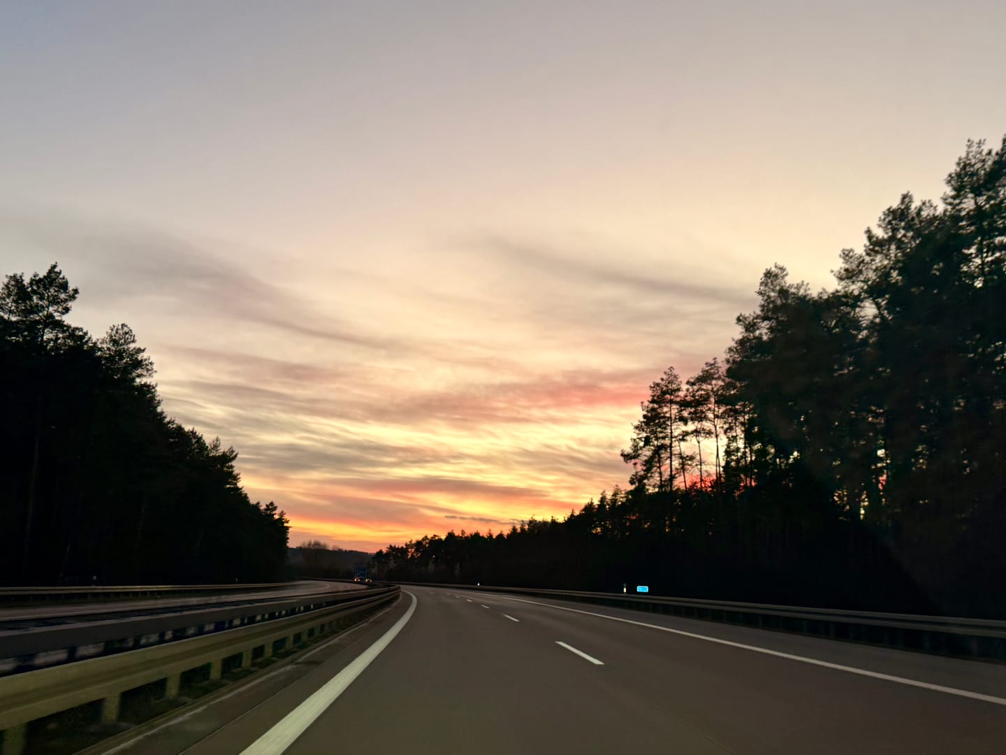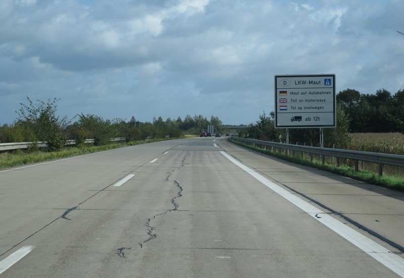 Chasing the horizon on the AutobahnI discovered that much of the road is made of concrete, not asphalt. This means that hundreds of slabs (or sections) are laid end to end, with each section touching the next. At each contact point, there’s some rubber filling. It’s a clever and practical system, as the joints allow for expansion in the heat and contraction in the cold.